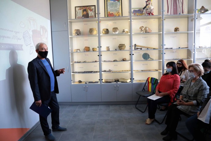 Завідувач музею, доктор історичних наук, професор Юрій Бровендер для знайомства з археологічним музеєм провів для присутніх презентацію. У музеї представлені експонати, що демонструють історію Луганщини, починаючи з кам'яного віку до раннього модерного періоду.
